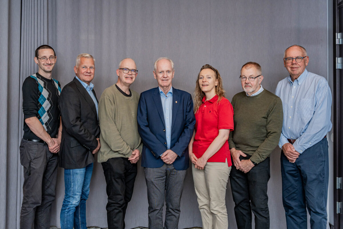 Från vänster: Jens Gynnerstedt (suppleant), Anders Hallin (ledamot), Fredrik Persson (suppleant), Mats Helmfrid (ordförande), Linda Kraft (ledamot), Per-Olof Järvegren (ledamot), Per Sköld (vice ordförande). Ej med på bild: Thomas Åkesson (suppleant).